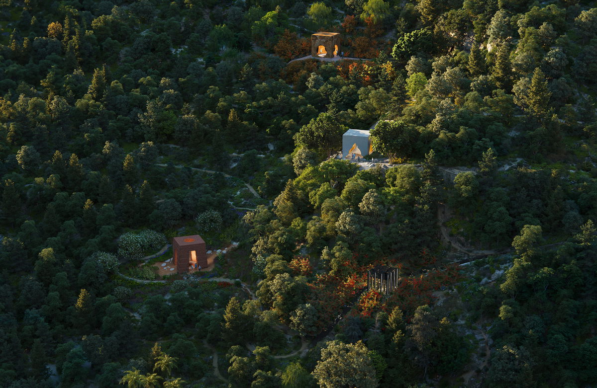BIG has won the international competition to design Faith Park – a new 200,000-m² public park on the hillsides outside of Tirana, Albania. Laid out as a genealogical tree of faith, the park branches from a shared origin in the valley into three routes, guiding visitors through gardens, olive groves, and forested slopes toward nine pavilions – each dedicated to a different spiritual tradition. Framed by gardens inspired by geographic and spiritual origins, the pavilions are constructed in materials including Jerusalem limestone for Judaism; colored Italian marble for Christianity; white sandstone mosaic for Islam; and granite, onyx, marble, and river-polished stone for the Dharmic and East Asian traditions. The Museum of Remembrance is formed from nine rammed-earth volumes arrayed around a central garden, celebrating diversity and unity at the entrance of the Park. “In the time of the Anthropocene, where our removal from nature and our presence on the planet has become so substantial and so damaging, it seems that we must return to our common roots – to begin worshipping our natural environment, our ecosystem, our shared planet that we call home. In that sense, it feels almost inevitable that the Park of Faith – organized like a livable, inhabitable evolutionary tree of faith mapped onto the natural topography of a mountain, connecting the valley to the summit, the earth to the heavens, and rooted in respect for nature – is a project the world is longing for, whether we know it yet or not.” – Bjarke Ingels, Founder and Creative Director, BIG