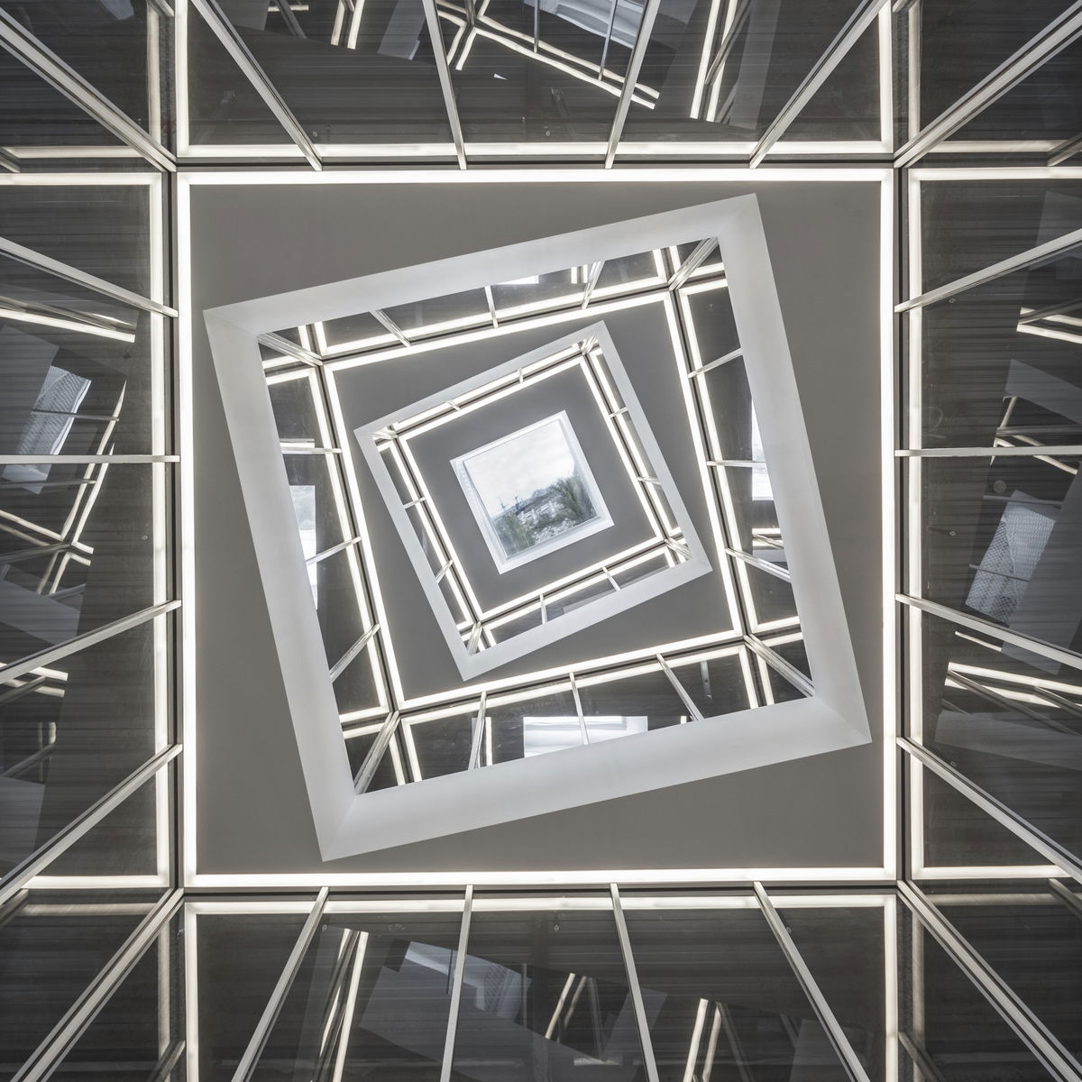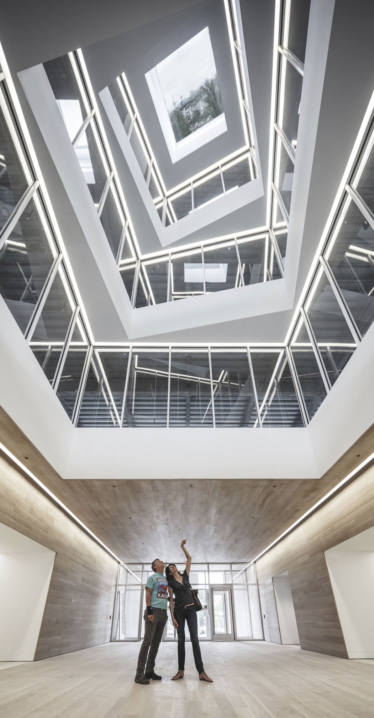 Navy Yard Basin Views — Referencing the Navy Yard's maritime history, a periscope penetrates the core of the building. The periscope brings natural light to each floor while projecting images from the Navy Yard basin into the center of the lobby.