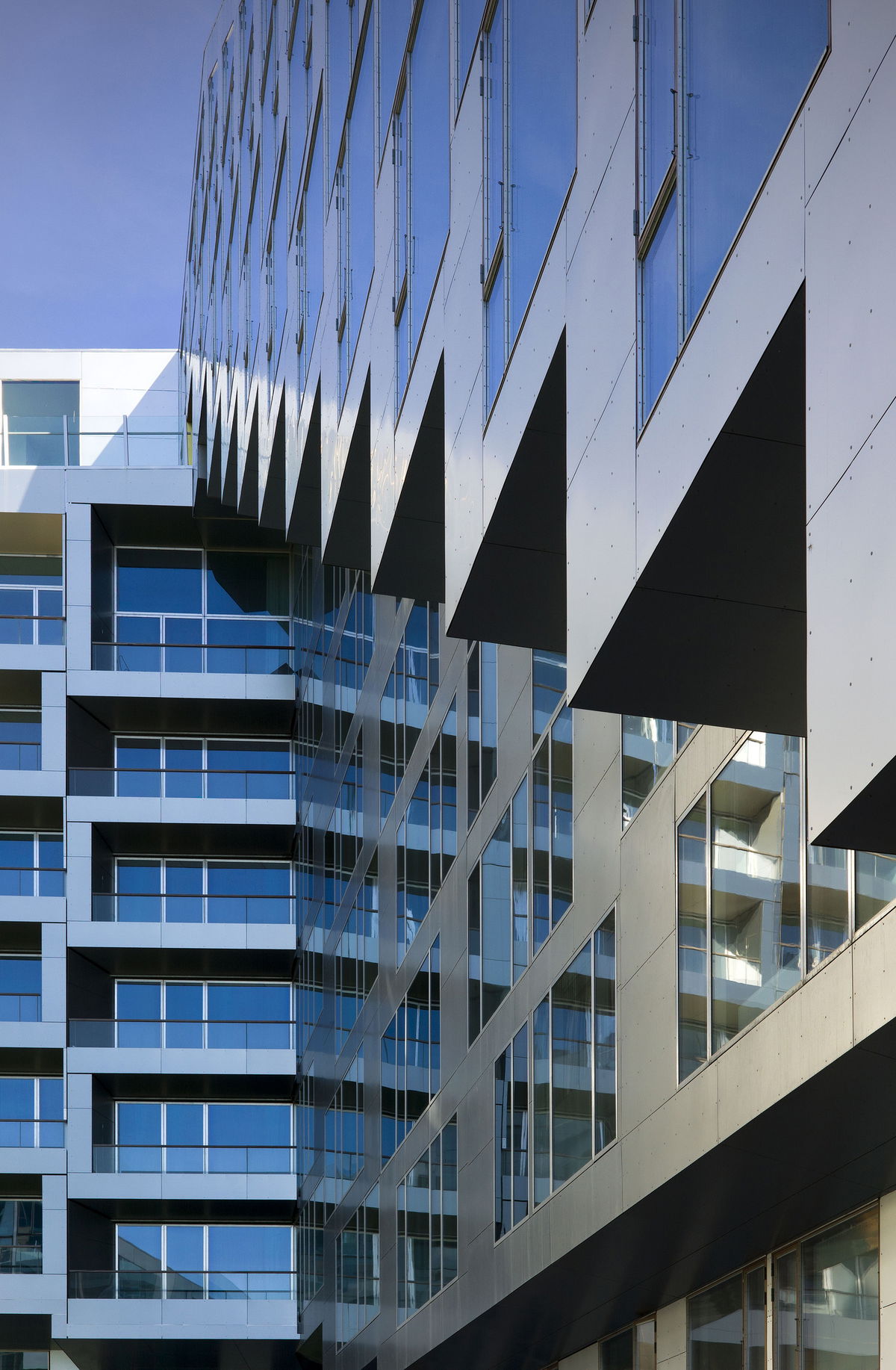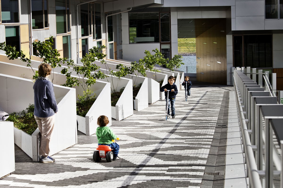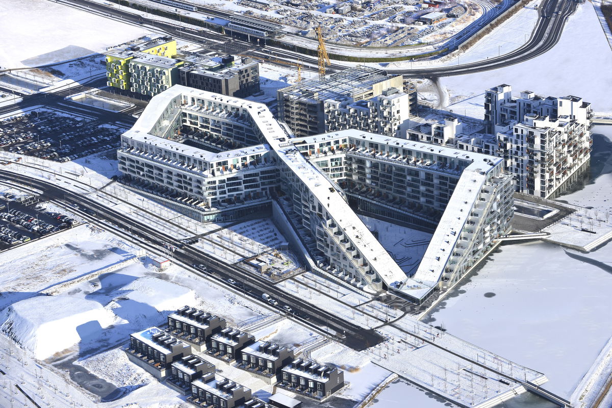 "The apartments are placed at the top while the commercial program unfolds at the base of the building. As a result, the different horizontal layers have achieved a quality of their own: the apartments benefit from the view, sunlight, and fresh air, while the office leases merge with life on the street. This is emphasized by the shape of 8 House which is literally hoisted up in the northeast corner and pushed down at the southwest corner, allowing light and air to enter the southern courtyard."Thomas Christoffersen - Partner, BIG