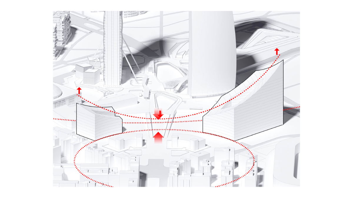 “Milan’s history is defined by twin buildings and grand gateways - architectural markers that shape the city’s fabric. Rather than proposing two towers, we envision two courtyard buildings defined not by their height, but by connection - bridging the scale between the neighborhood and central towers. A sweeping canopy spans the void, serving as a tangible memory of Milan’s historic axis, while a colonnade of slender steel columns transforms the open space into a new public realm for the entire city - dissolving barriers between indoors and outdoors, between buildings and people."Lorenzo Boddi - Partner, BIG