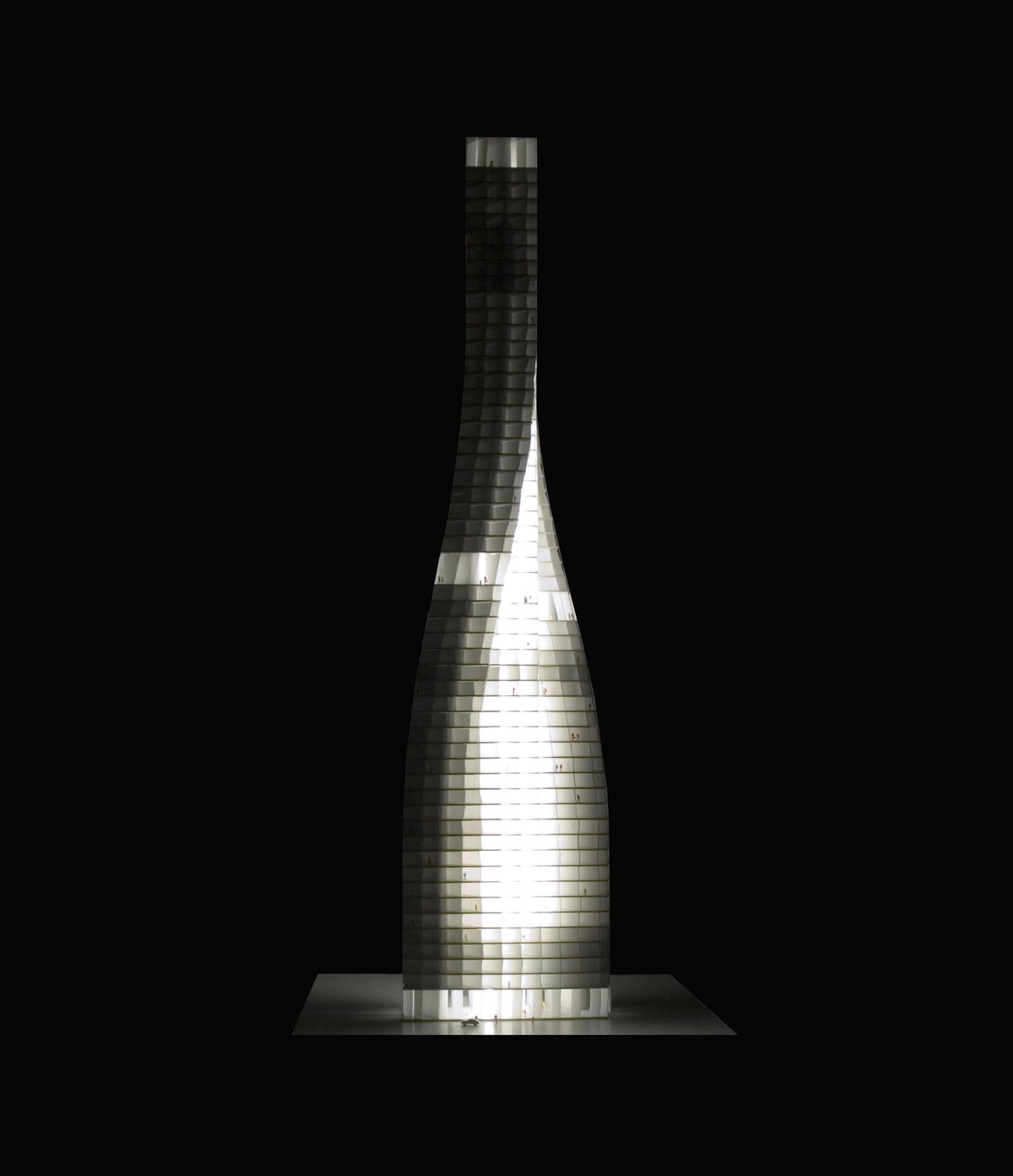 — BIG designed a structurally complex yet visually simple volume which would appear as an unstable monolith due to the windloads and the tower's minimal foothold.