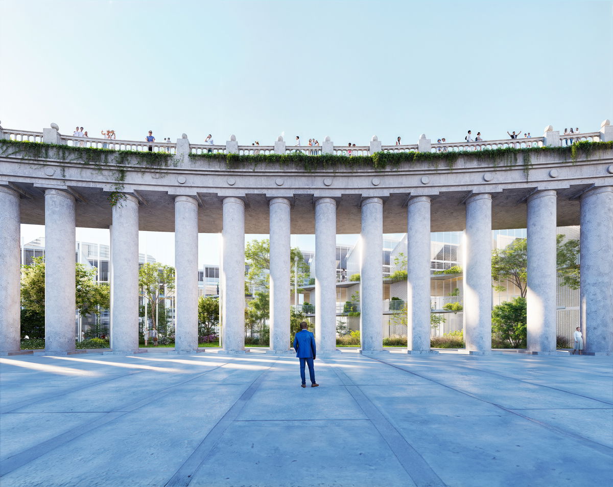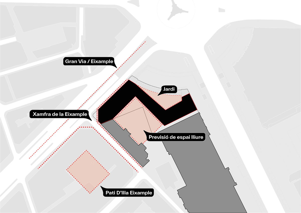 A NEW COURTYARD FOR THE CITY — The shape of the building generates two key openings to the city - one at the front, between the colonnade and the building, and another at the rear. These open spaces form urban gardens reminiscent of Barcelona’s characteristic interior courtyards, creating an interplay between nature and architecture.