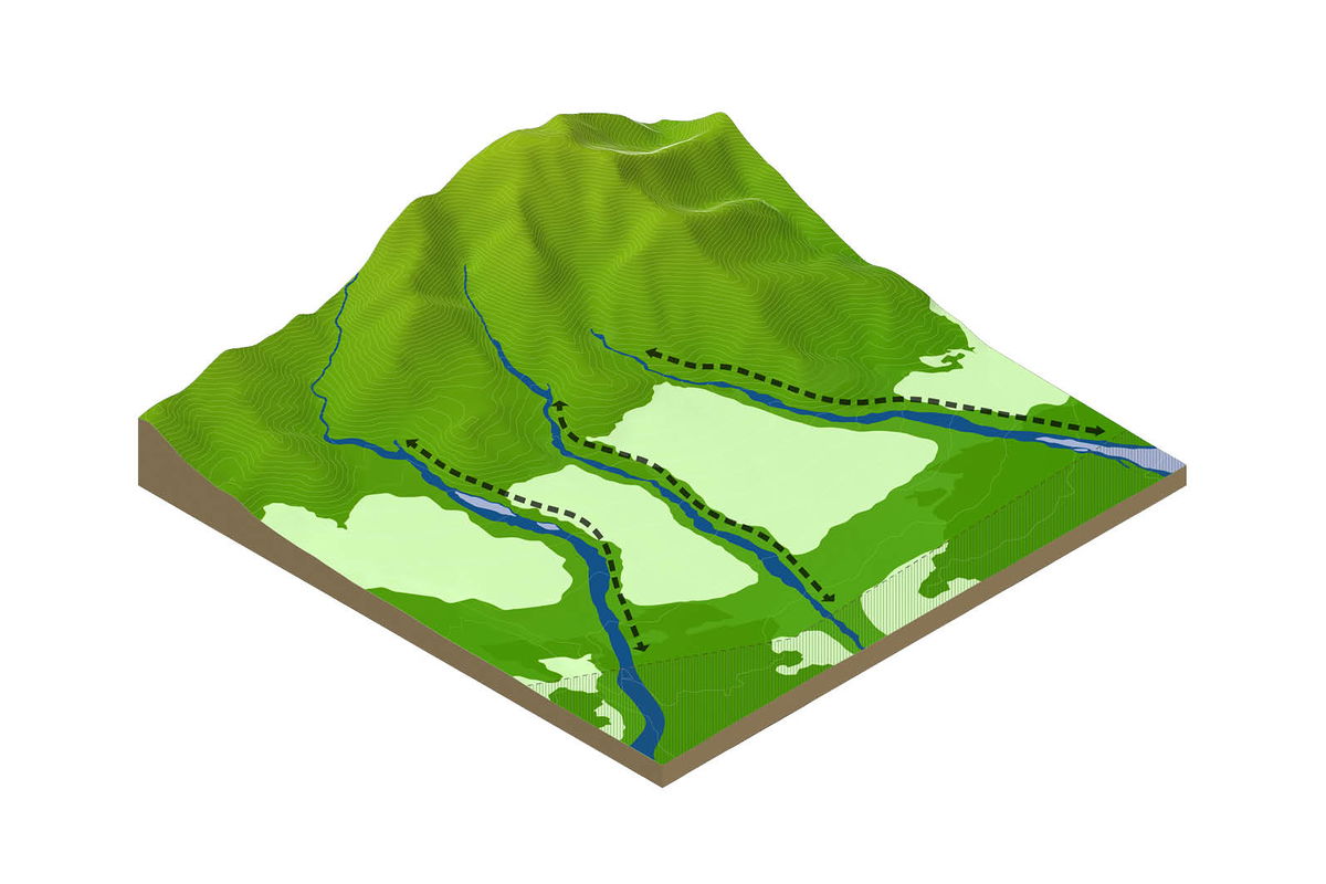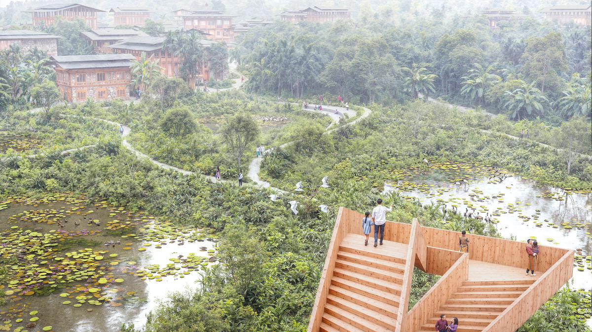 — To protect existing and future development against flooding in the monsoon season, paddy fields are established along the site’s rivers.