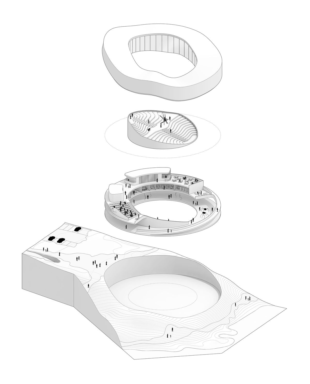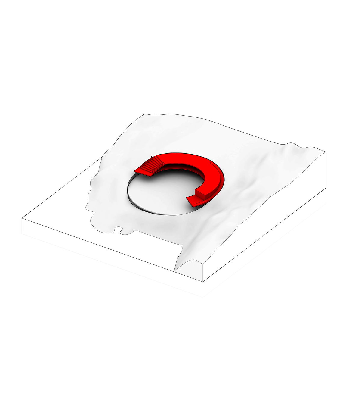 GLACIER — The loop follows the natural landscape and forms a melted ring as a geometric simplification of a metaphor to glaciers and drifting snow.