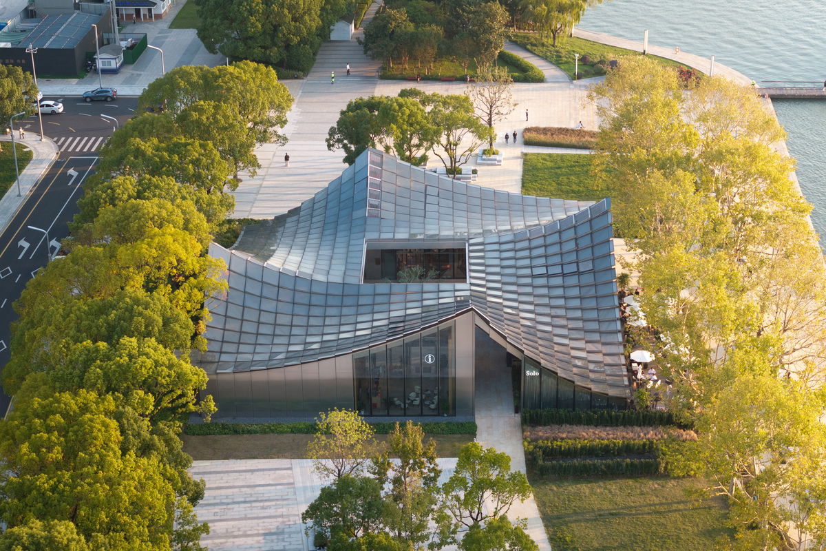 "The Jinji Lake Pavilion is conceived as a family of public rooms arranged under a single unifying canopy. Evoking the architecture of traditional Chinese teahouses, the glazed ceramic tiled roof is replaced by actual glass tiles, taking the concept of lightness and transparency to another level, and blurring the distinction between indoor and outdoor - garden and architecture. Like a little sister to the Suzhou Museum of Contemporary Art, the Jinji Lake Pavilion seeks to reimagine the future architecture and landscape of the Lake District rooted in the rich heritage of Suzhou's Chinese garden architecture."Bjarke Ingels - Founder & Creative Director, BIG