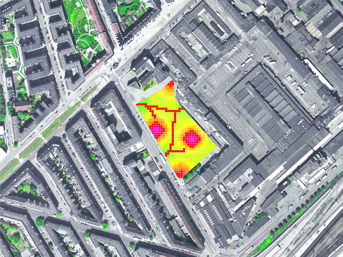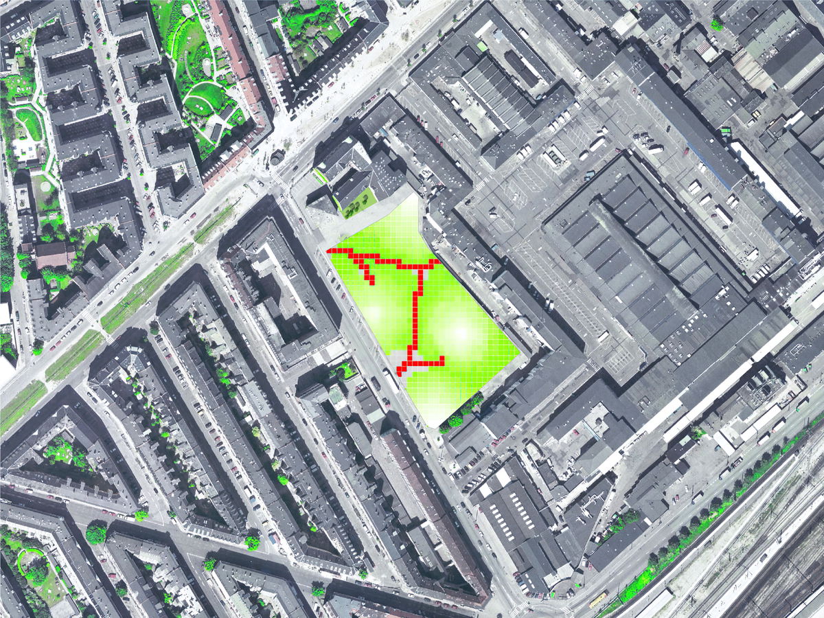 ACCESSIBILITY — The buildings have been placed in a way that allows for access to the markets at the trendy meat packing district, Kødbyen, with paths leading through the area. By angling the top side of the individual squares, a continuous path suitable for trolleys and mobility-impaired persons can be created.