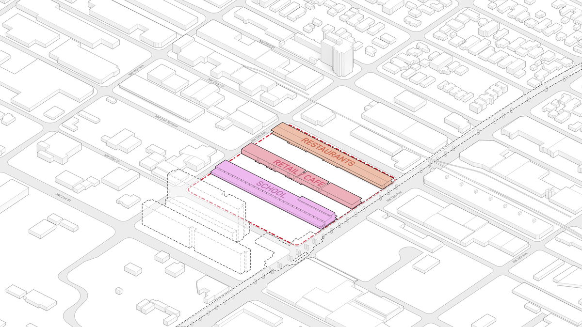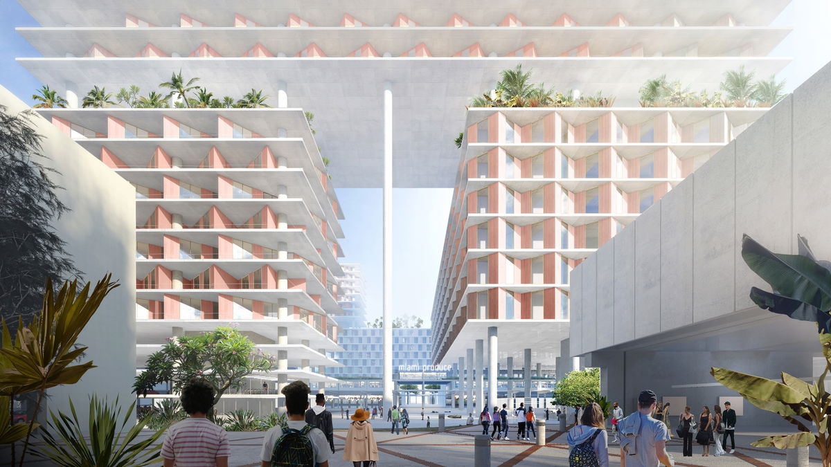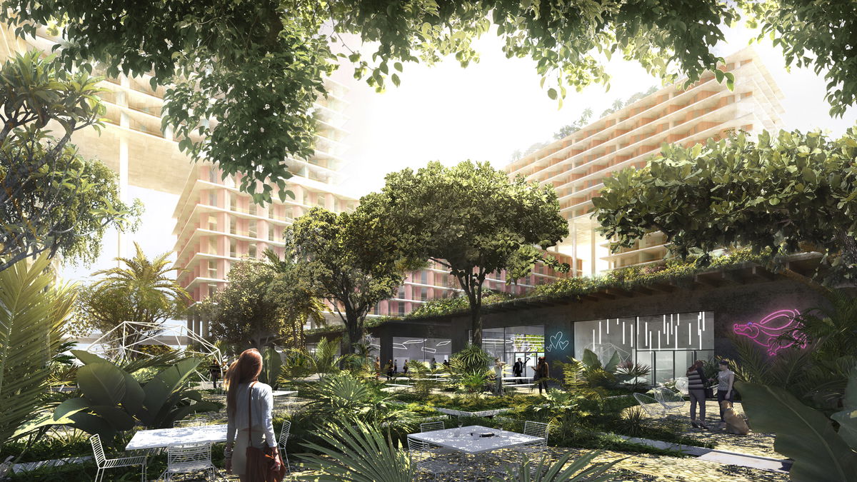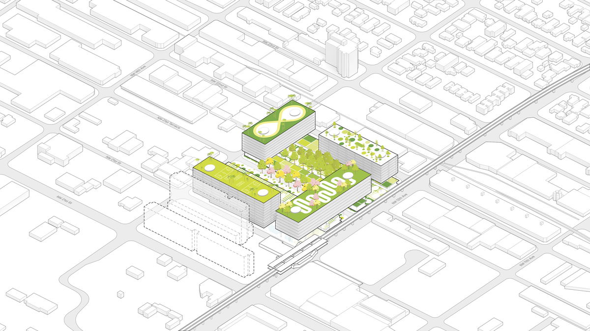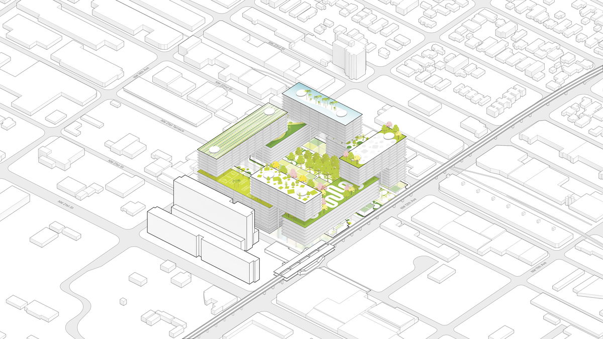 MIAMI PROUCE — The buildings function as a three dimensional urban framework designed to activate the neighborhood with varying programs and environments.