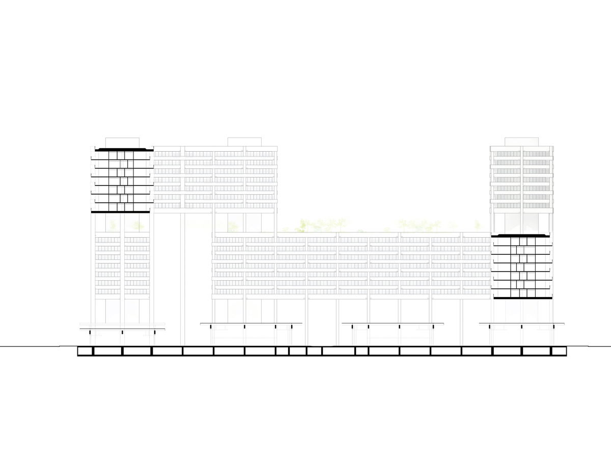PASSAGES — A series of passages cut through the buildings to allow efficient circulation from the metro station across the site.