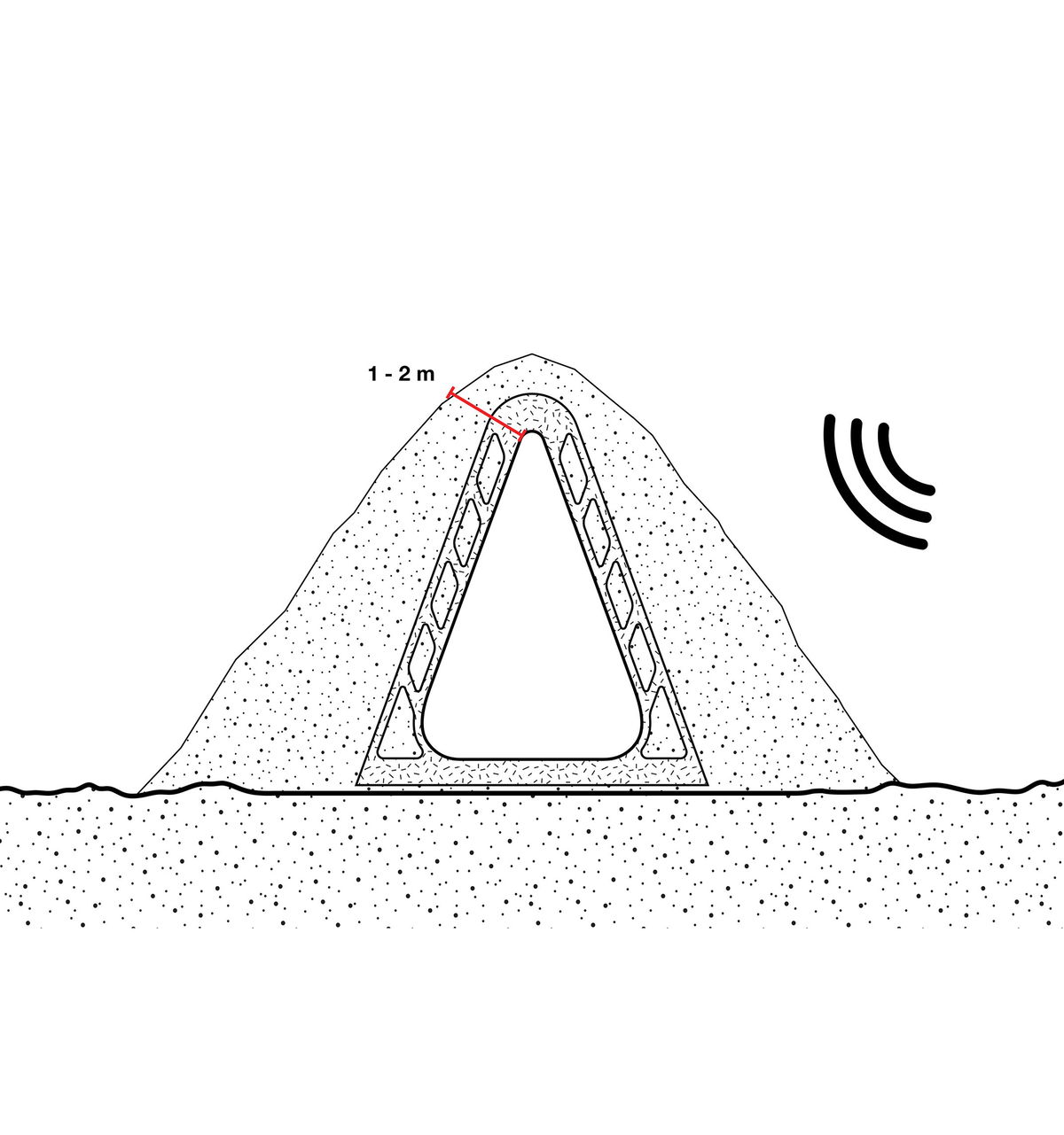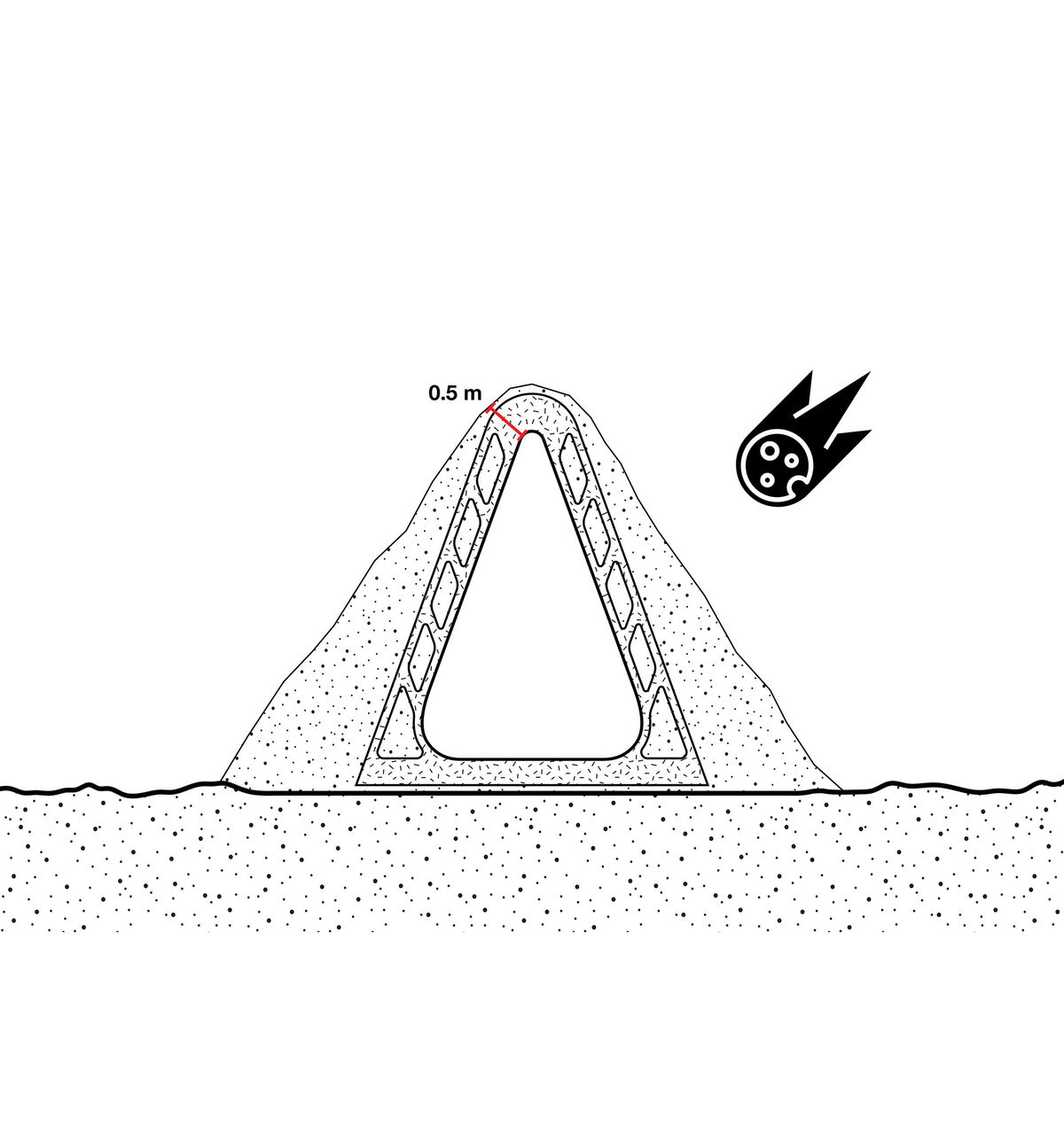 MATERIAL USAGE OPTIMIZATION — Pockets of loose regolith will be introduced as a way to minimize printing time and energy demands while keeping the same level of protection.
