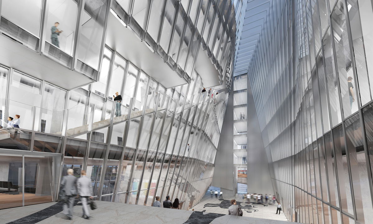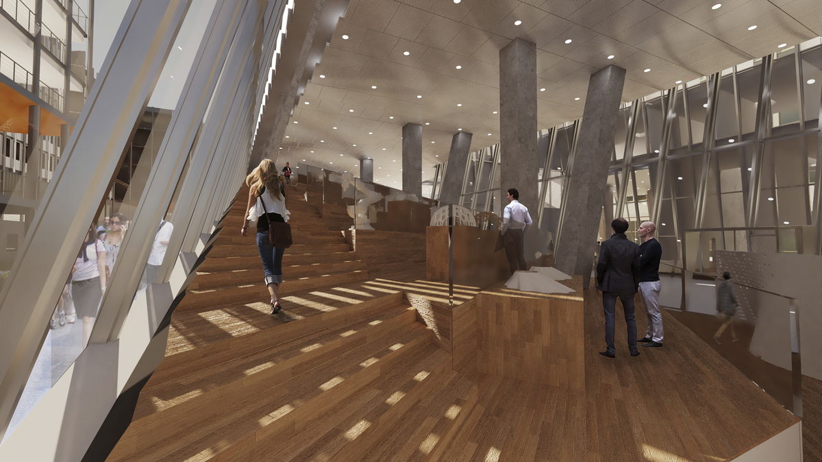 Canyon — The grand atrium becomes a sculptural daylit canyon - a physical and visual meeting point connecting all users of the building, promoting exchange and sharing between researchers, companies and visitors.