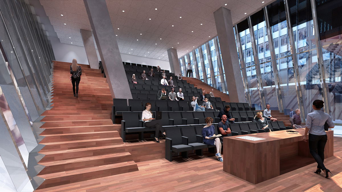 Connection to elevated plinth — Visually, the ground floor links the plinth to the street level, and strengthens the connection between the Jussieu Campusand the urban flow of the city.