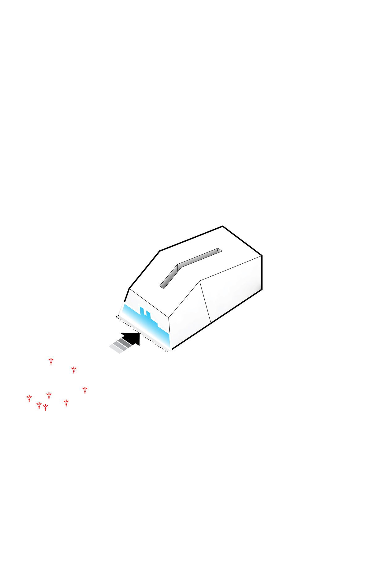 Courtyard — The center of the building is subtracted to become an atrium maximizing daylight and circulation. Offices are facing outwards with natural ventilation. Laboratories with mechanical ventilation are organized towards the atrium forming a center of visually connected spaces.