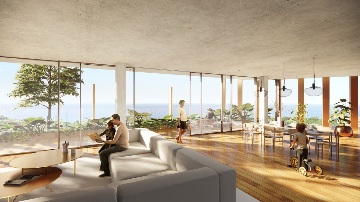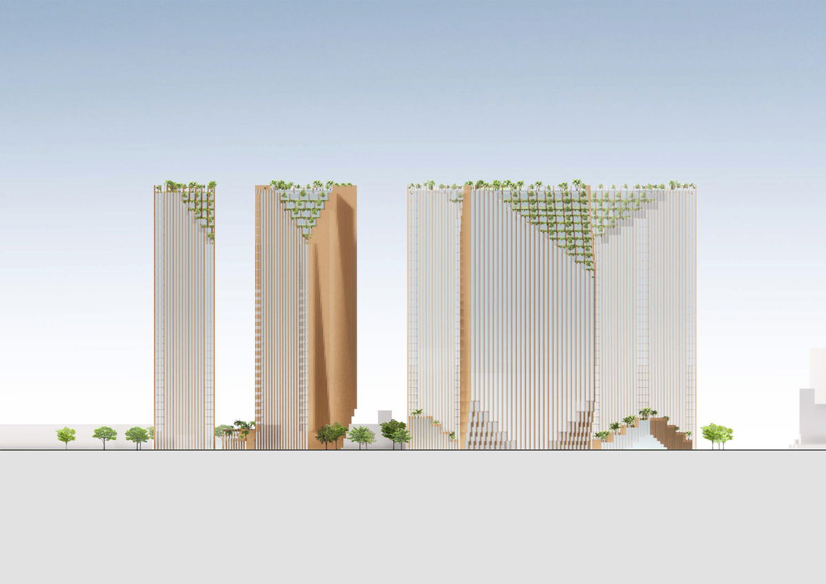 GREEN TERRACES — The cuts at the top of each tower are then stepped to provide outdoor terraces that seamlessly connect to the indoor living space. These tenants get the park experience right outside their doors.