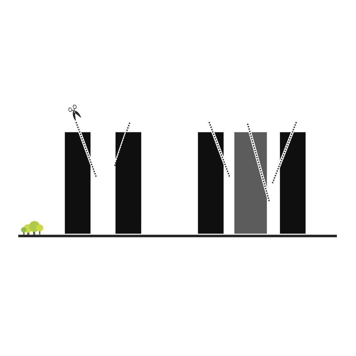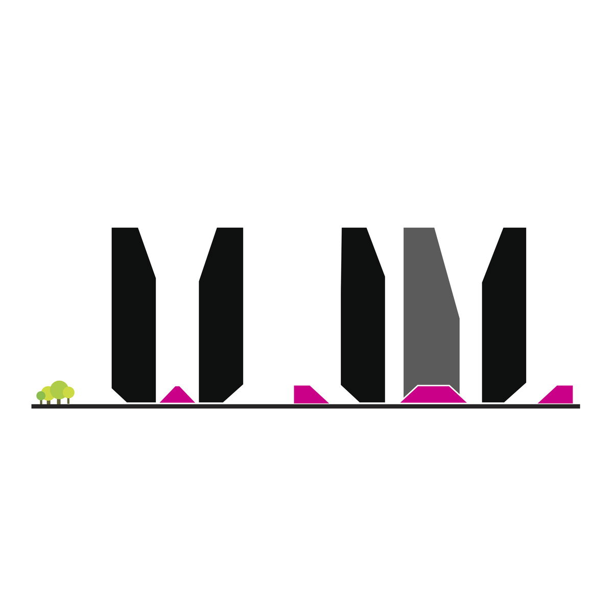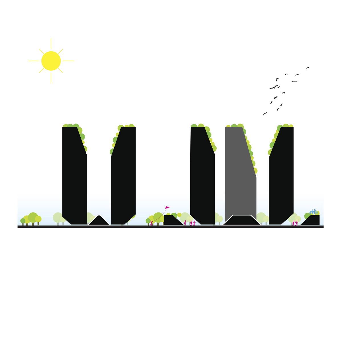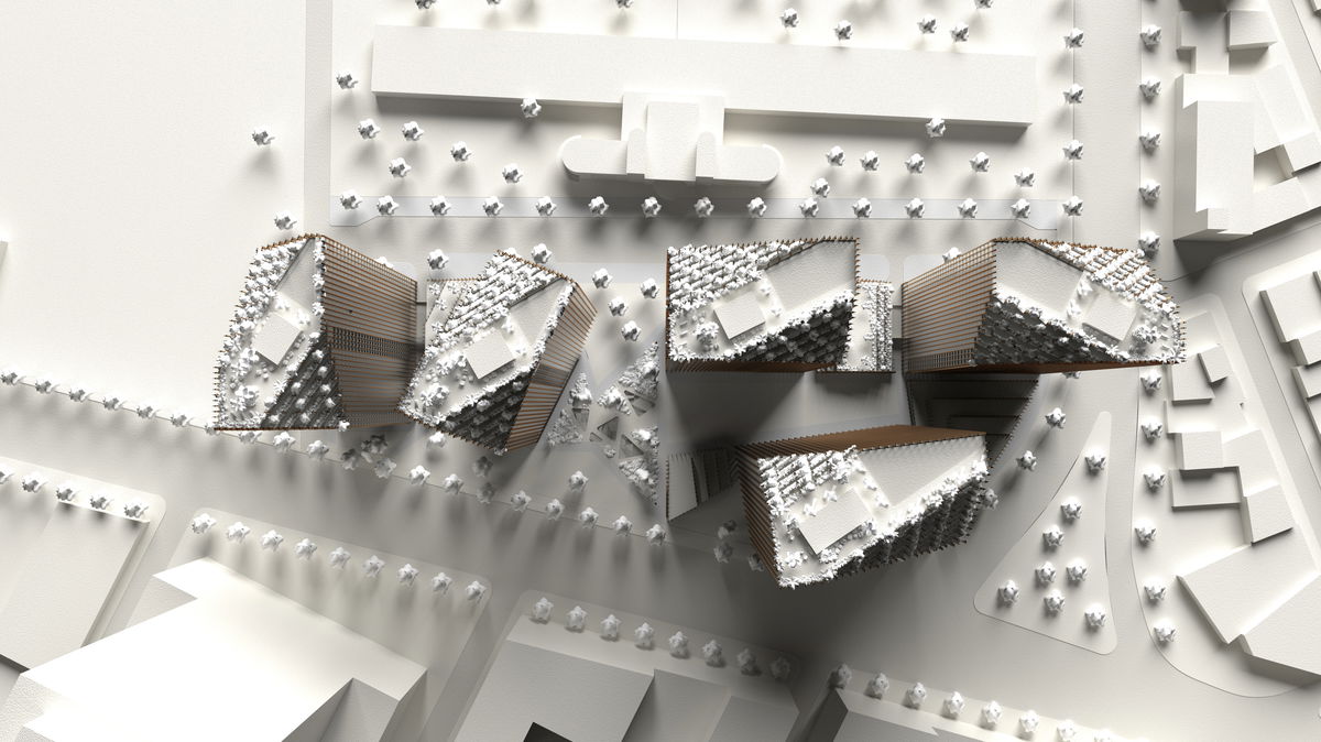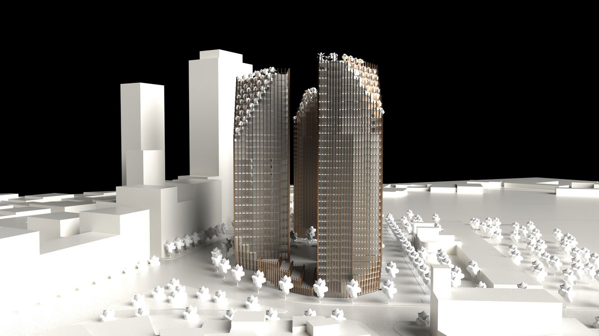 OPEN URBAN CORNERS — The base of the towers are carved inward in order the open public space at the ground floor, and soften the urban edges of the tower footprints.