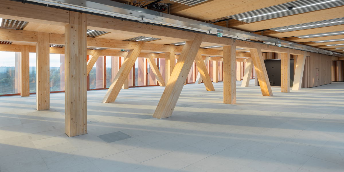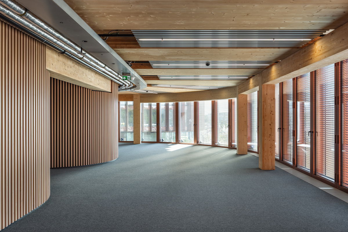 IDEAL OFFICE TYPOLOGY — BIG based the design on an ideal office bar typology measuring 17 m in width, with workstation seating or enclosed office space on both sides, and a strip of core and support functions in the middle.