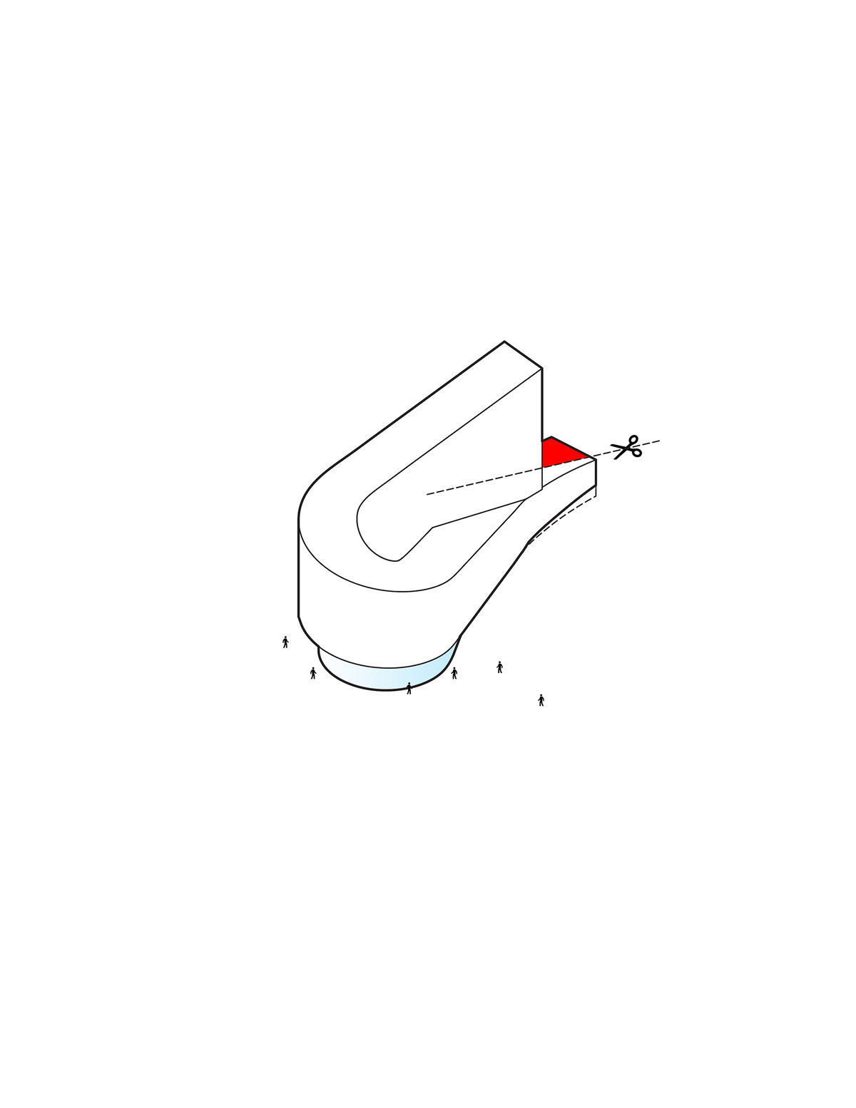 TRIM — The massing is then trimmed at the site boundary line to create a seamless approach to the building’s roof when approaching from the east.