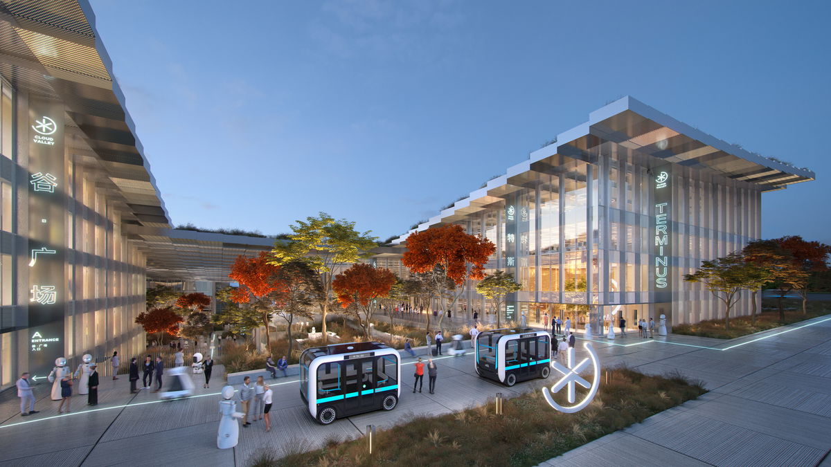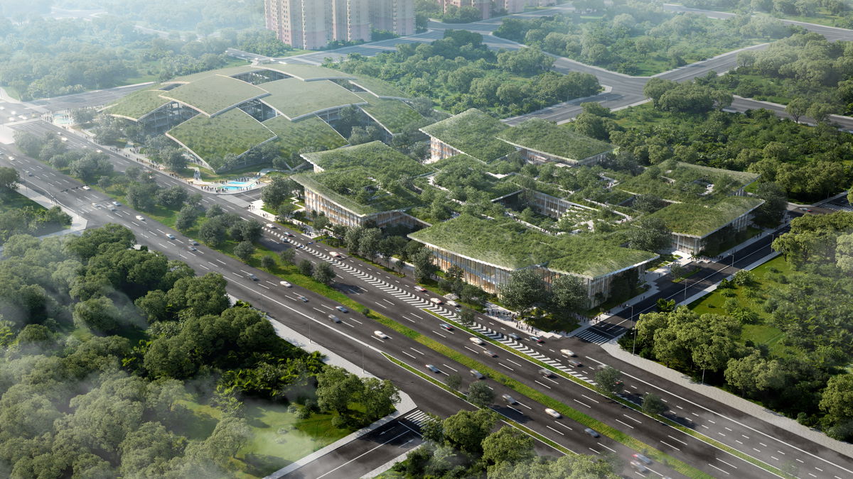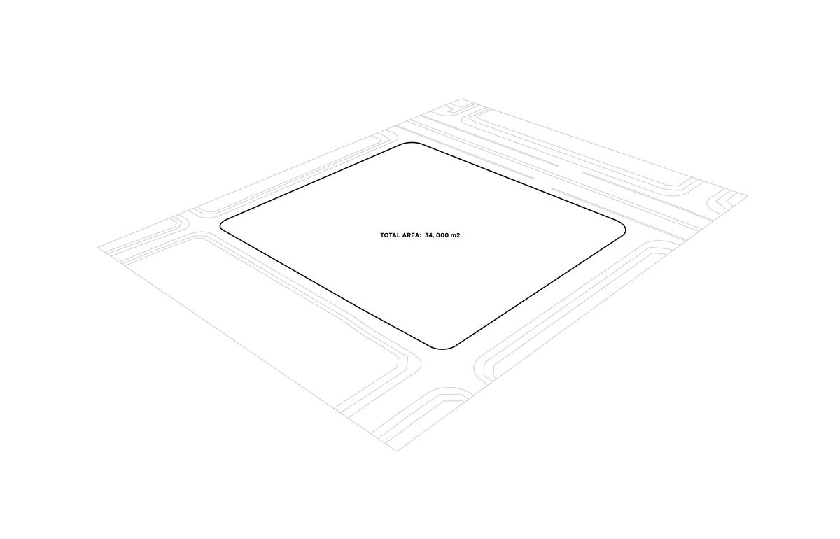 SITE — The site is located along Xinzhou Ave. The topography gradually rises to the east and the total area of the plot is approximately 34,000 m2 GFA. There is a maximum ground coverage of 50% with a low Floor Area Ratio (FAR) of 1.5.