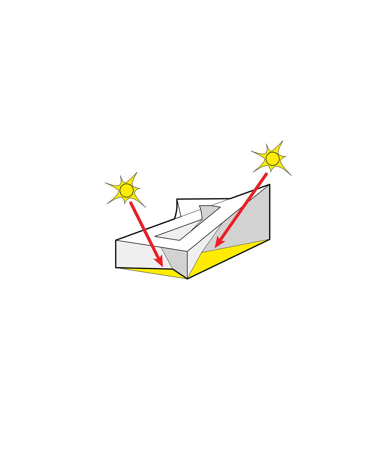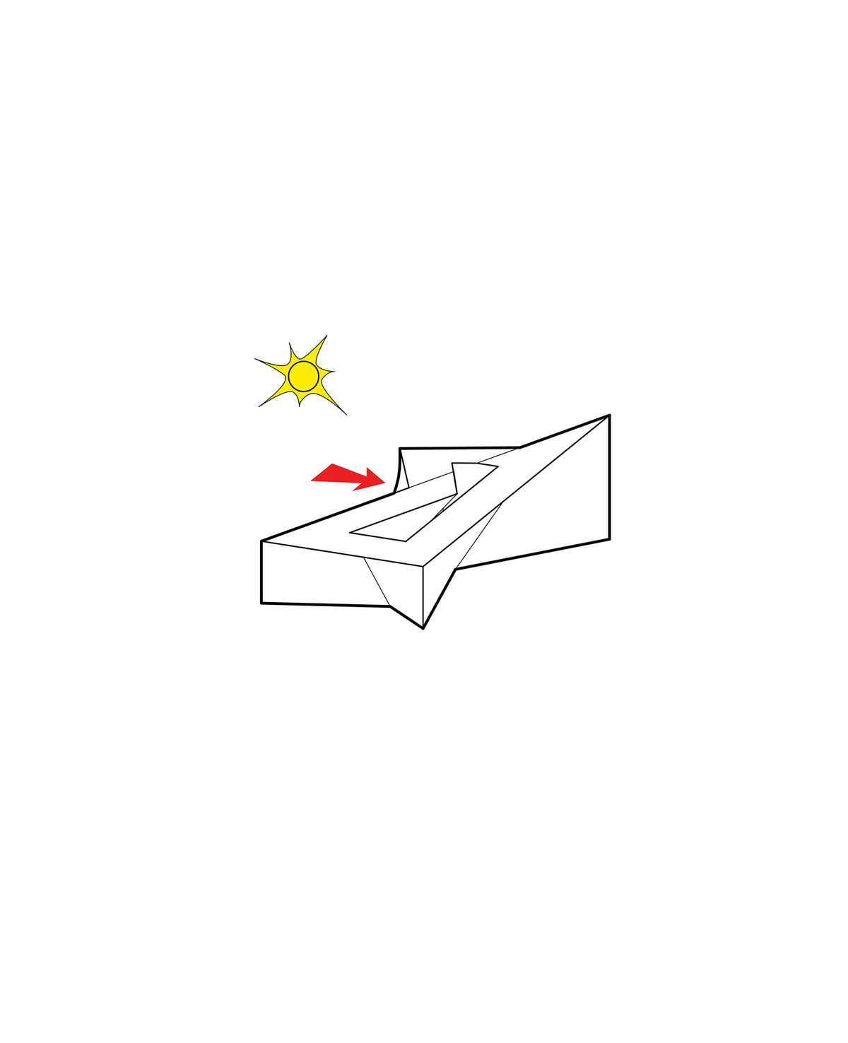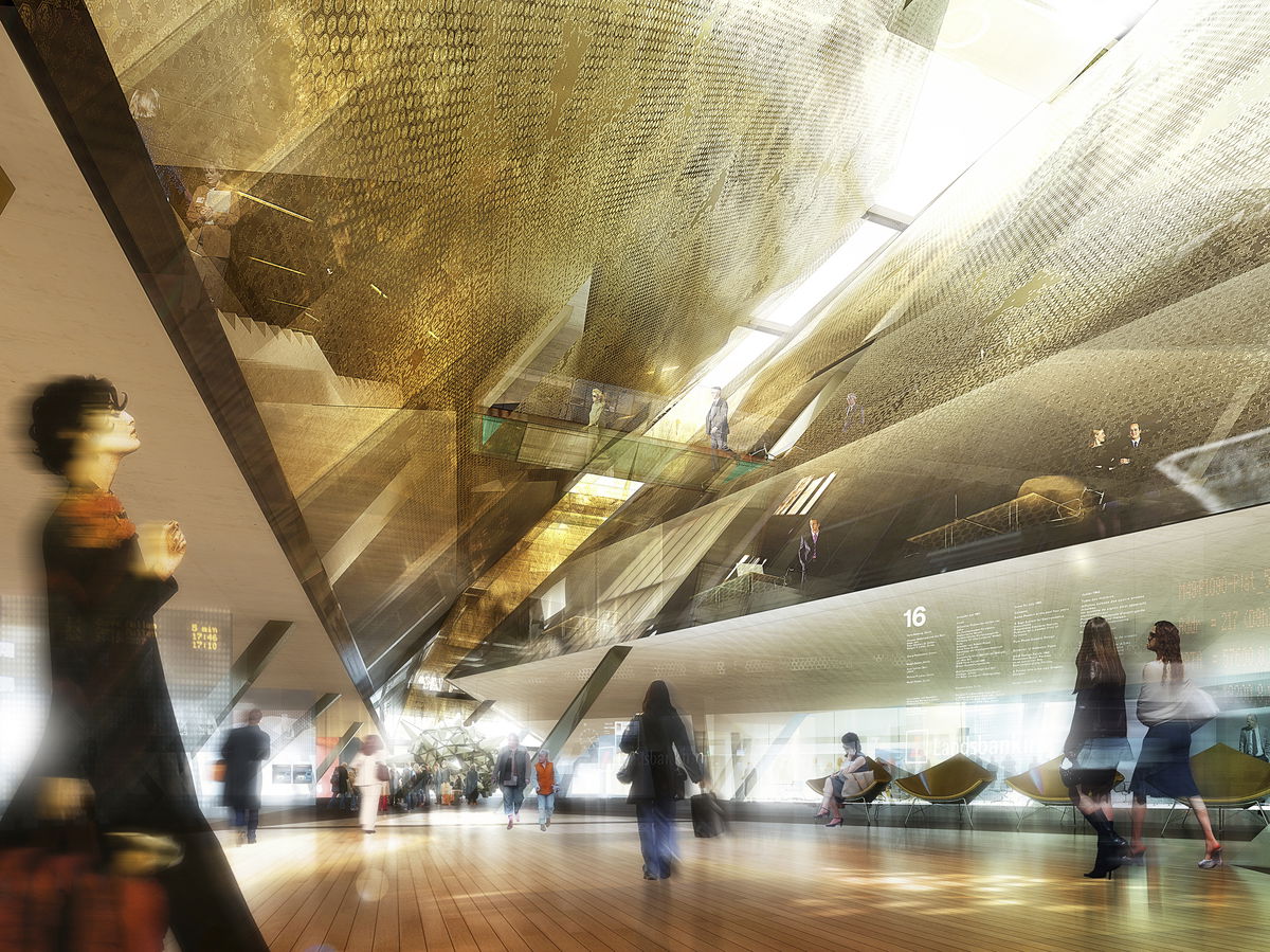 — Finally the two receding facades form an urban archway over the central courtyard, turning it into an urban void illuminated by a zigzag-shaped skylight, like a crack in a glacier.