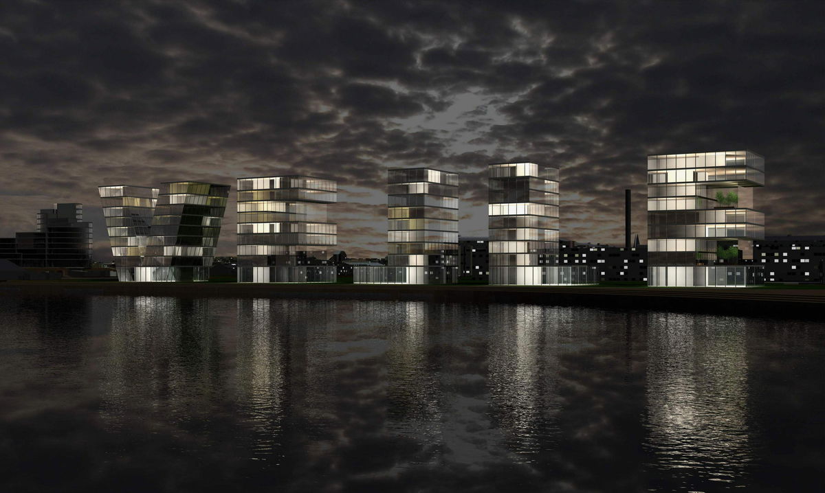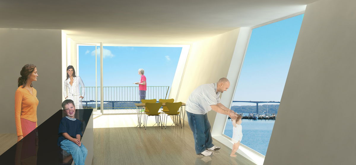 CREATE VIEWS BETWEEN BUILDINGS BY SLIDING THEM ALONG THE HARBOR