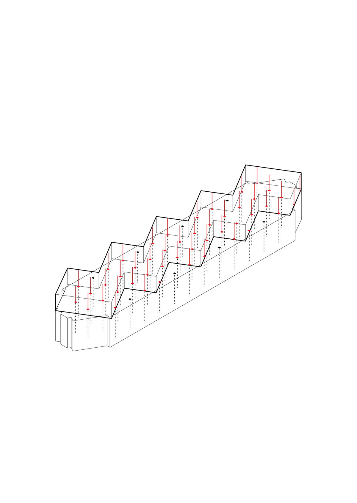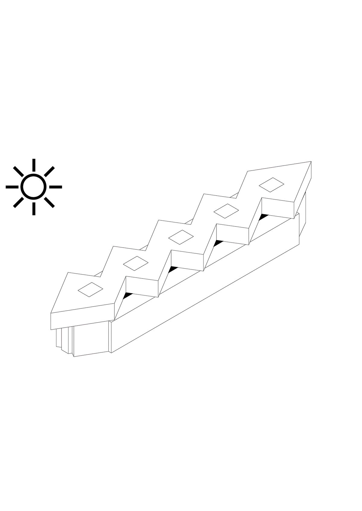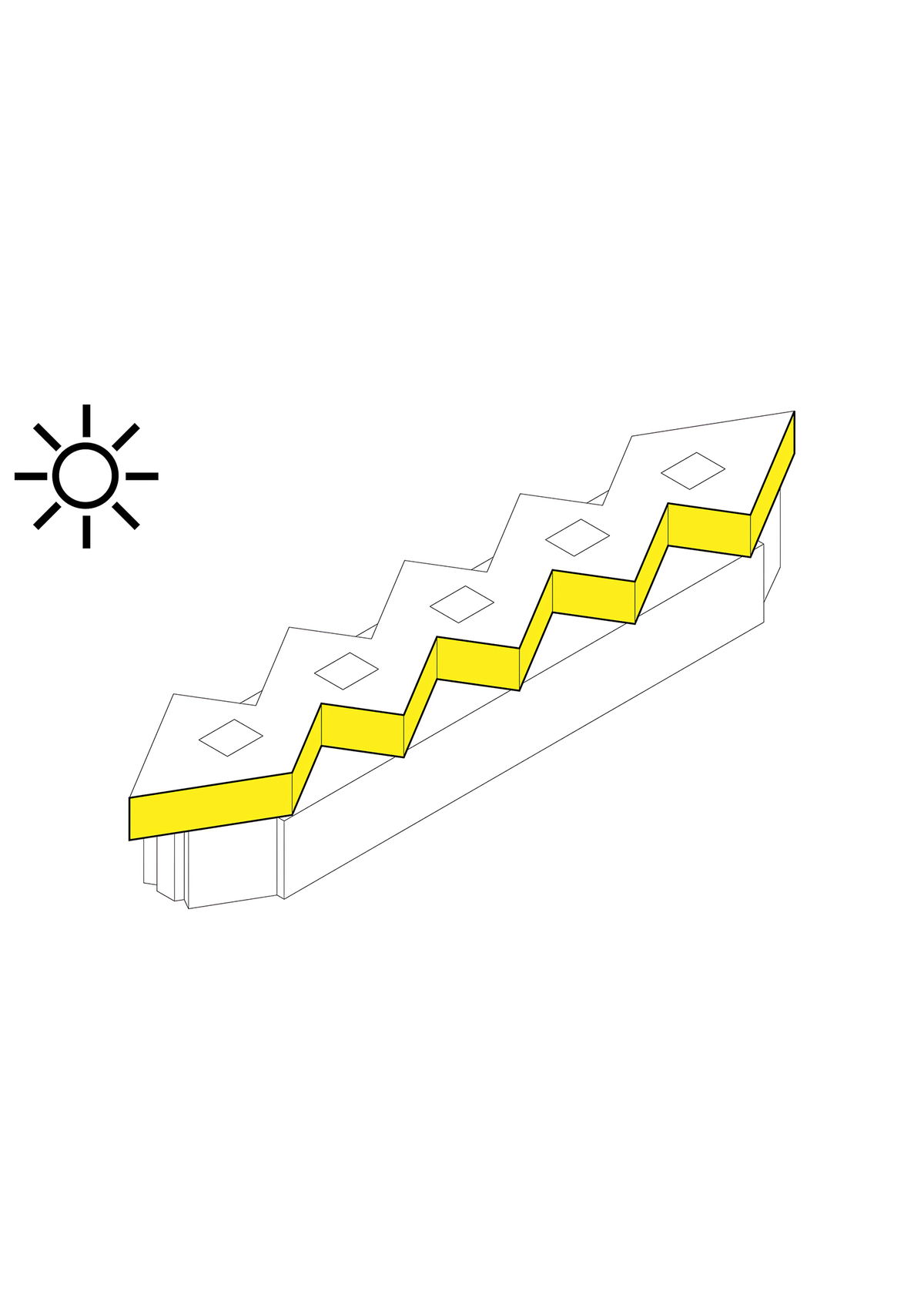 Sky Lights — In the openings are placed skylights, letting daylight into the deepest areas of the atelier floor.