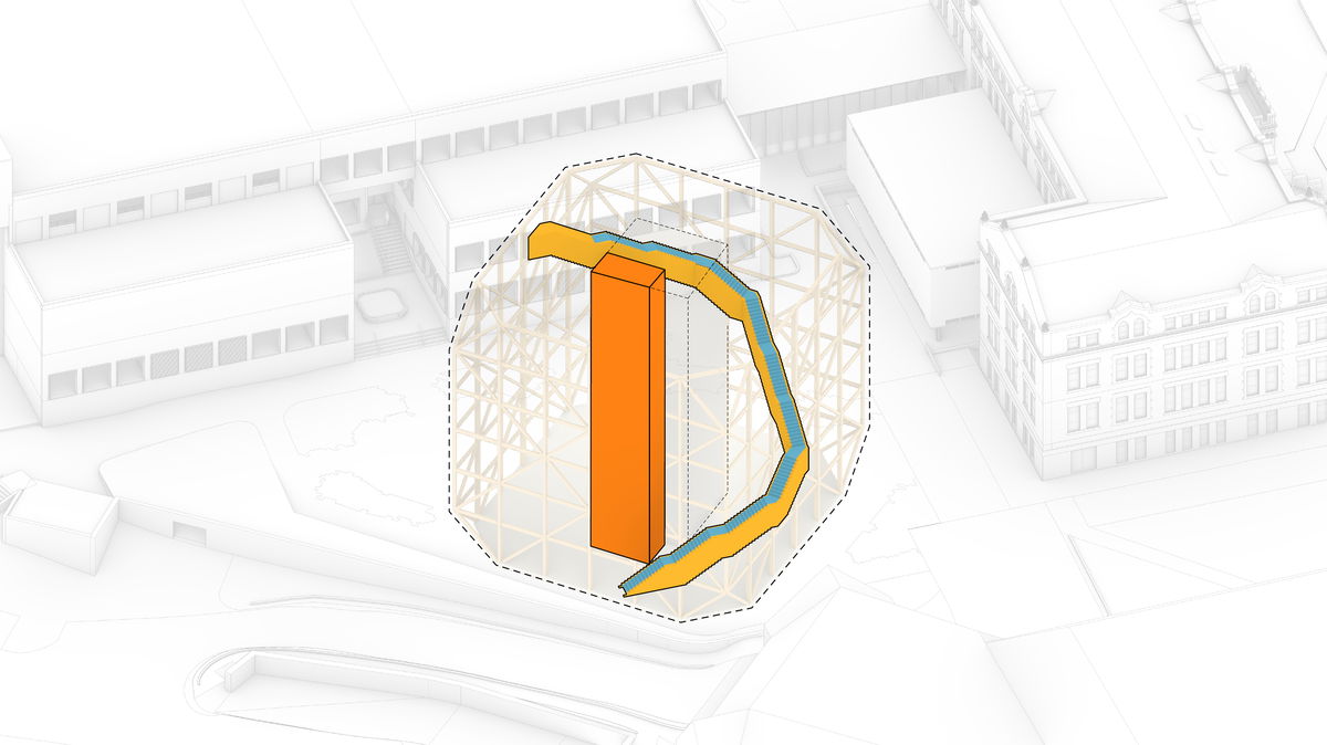 “Our design for the consolidated design studios at KU seeks to deploy all aspects of the profession in three distinct interventions: preservation, adaptation and new construction. The Makers' KUbe is conceived as a showcase in timber tectonics, traditional joinery, robotic manufacturing and sustainable materials. The timber bones of the building are exposed by stripping away all applied finishes - elevating structure to expression. A single staircase doubling as convenience stairs above and fire stairs within ties all student spaces together from park to attic. The building serves as a living curriculum, revealing all function, technology and structure as tangible elements for the students to appreciate and critique - learning solidified into built form.”Bjarke Ingels - Founder & Creative Director, BIG