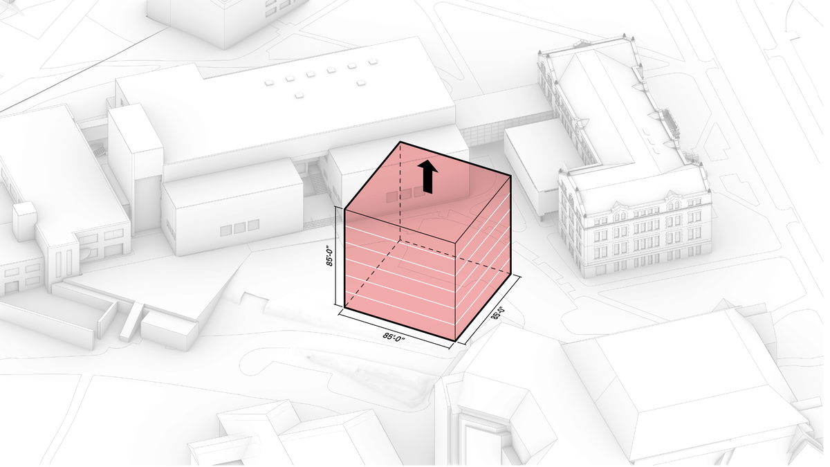 CONTEXTUAL HEIGHT — The KUbe is brought to a height of 6 stories, making it contextual among the adjacent buildings and a perfect cube.