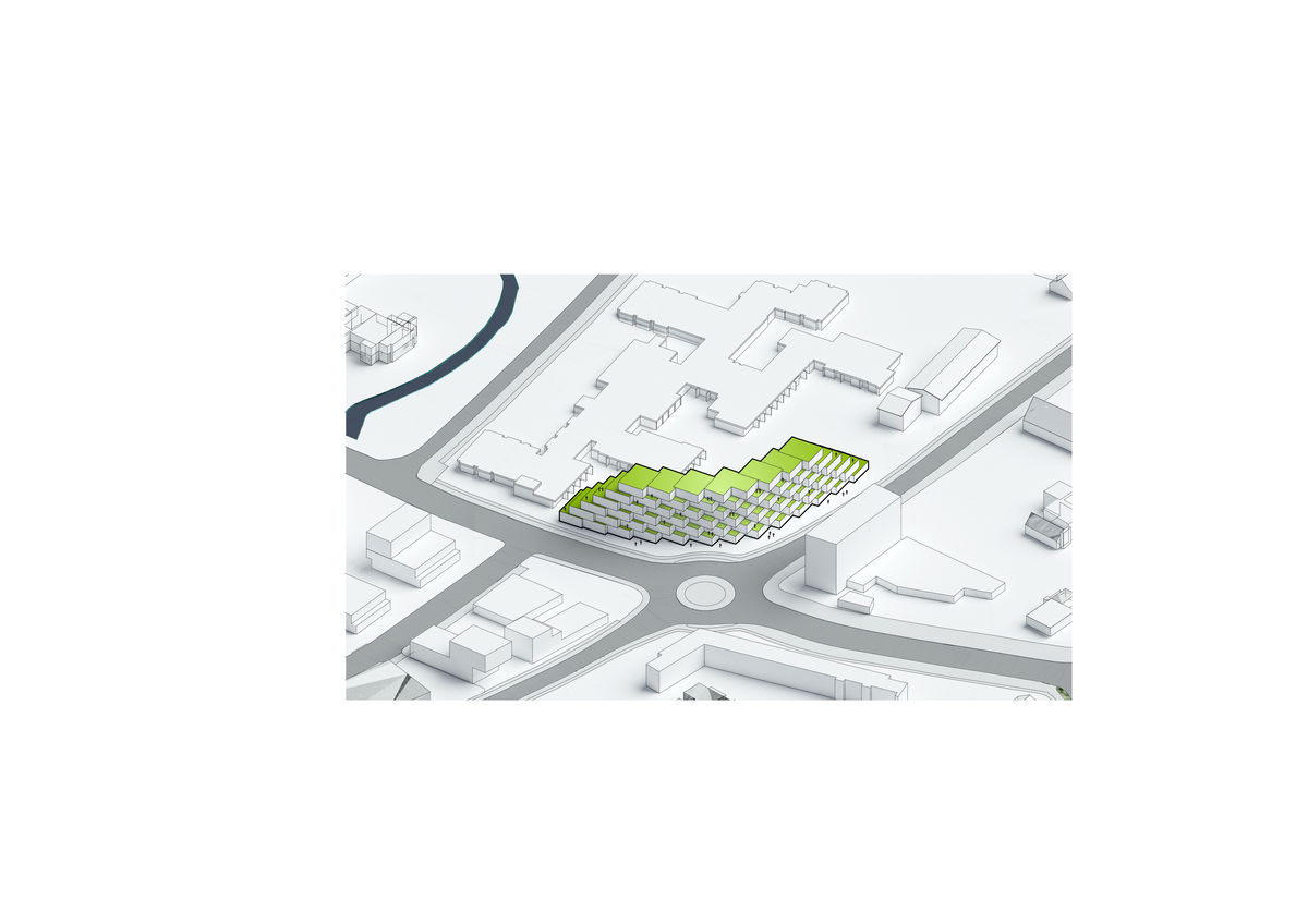 SITE — The residential building occupies 6,600 m2 on the corer streets of Vejlevej and Hans Jensens Vej in Billund, Denmark.