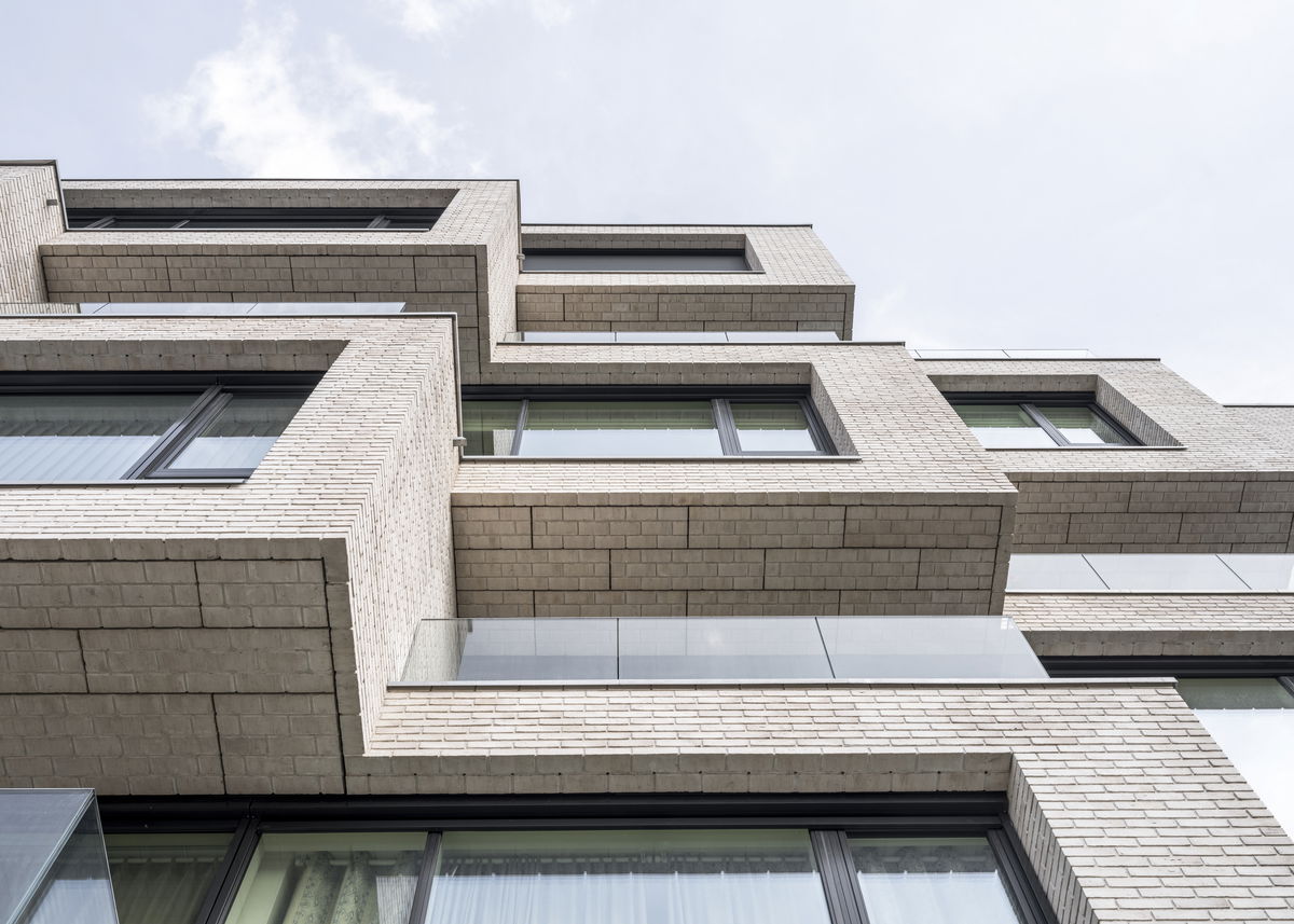CORNER SCALE — The corner ends of the building are pressed down to meet the scale of the neighboring buildings.