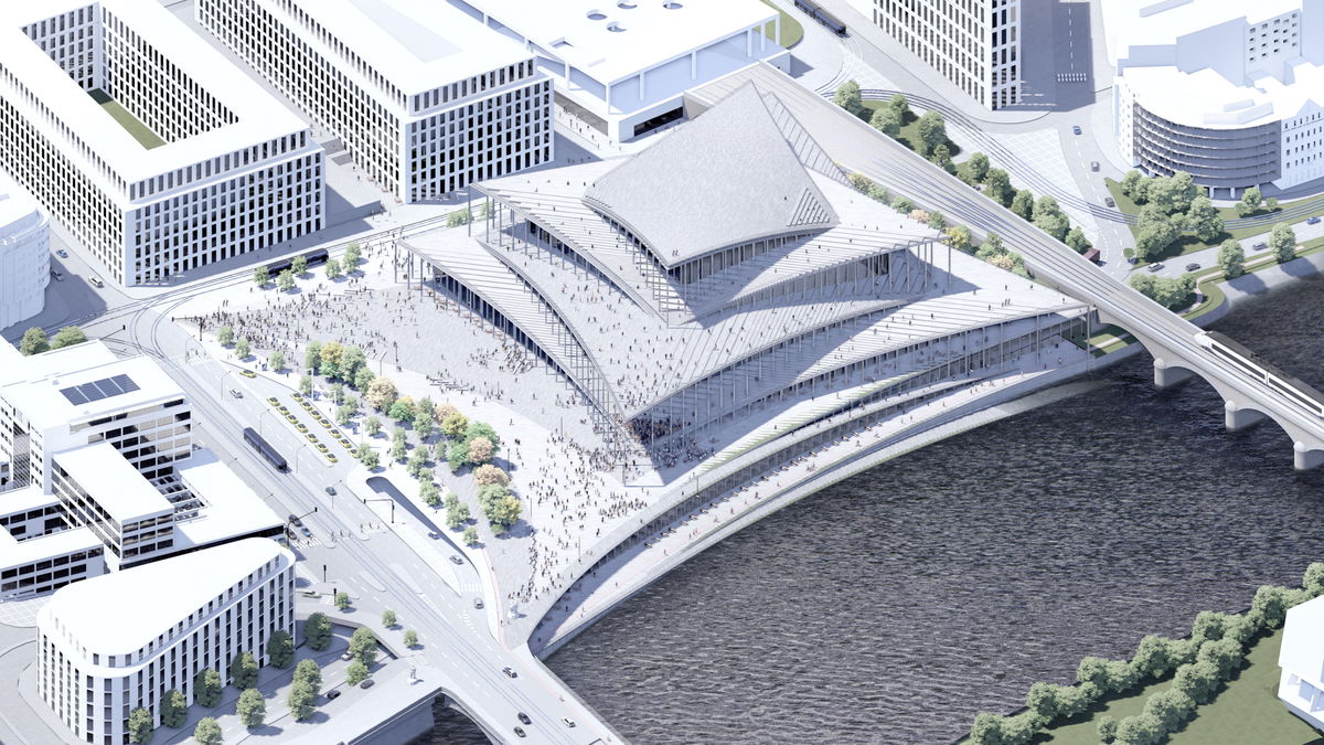 PRAGUE CENTER — A grand public building to bring the center of Prague to Vltavska.