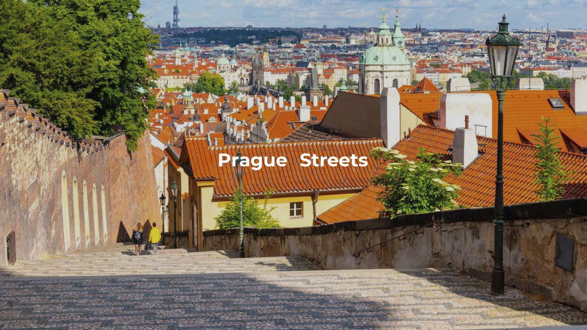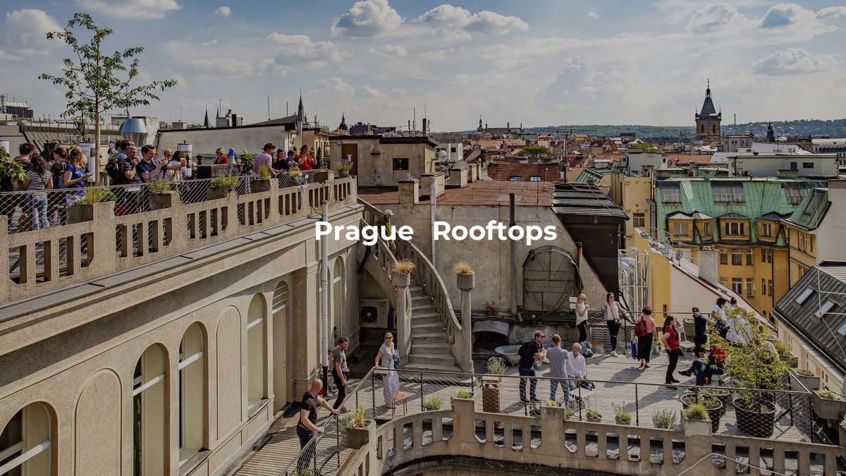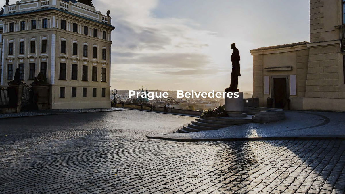 BELVEDERE ROOFSCAPE — Elevated terraces extend diagonally to views of Prague's iconic skyline and natural setting.