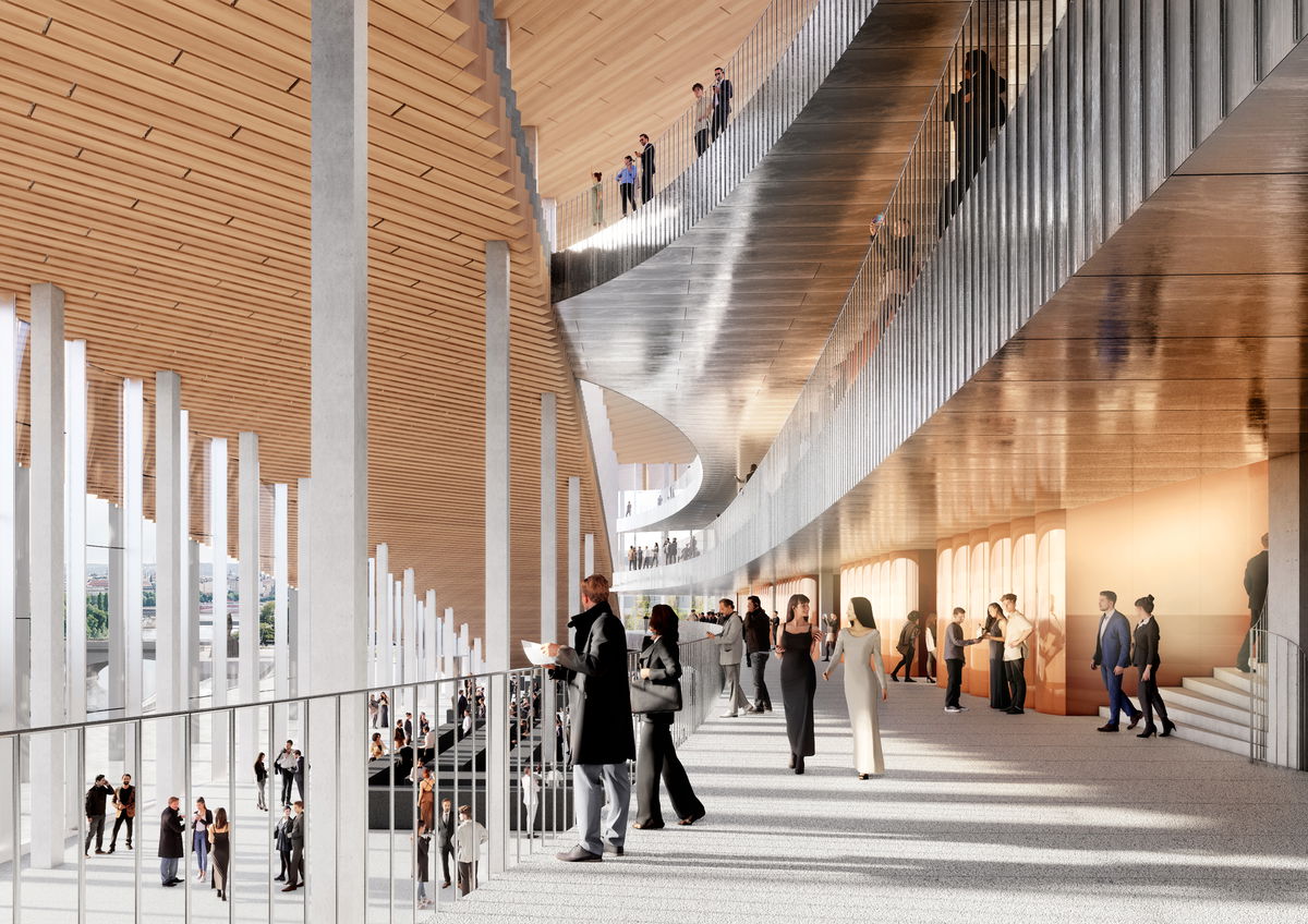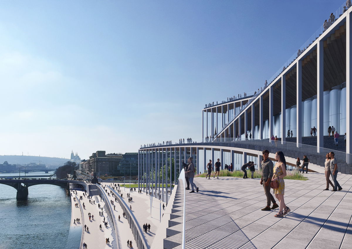 "The Vltava Philharmonic Hall is composed as a meandering journey from riverbank to rooftop. Public flows and belvedere plazas unite the city life of Prague to the music within. Its halls are formed for sight, fine-tuned for sound, and orchestrated for functionality and connectivity. From this rhythmic structure, a symphony of colonnades and balconies extend as platforms for public life. Expressive yet pragmatic, the new Philharmonic will ascend to form a key landmark for Prague - from river to roof."Bjarke Ingels - Founder & Creative Director, BIG