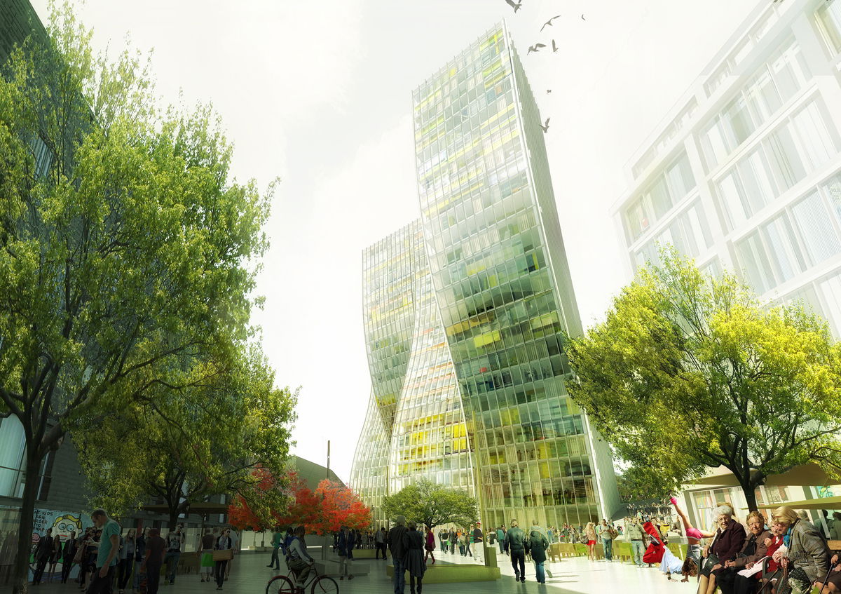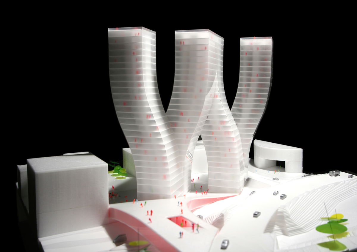 W TOWERS — As a final manipulation, the slab was cut open with two incisions to create a perfect 400 m2 floorplan for corner apartments in the upper part of the building.