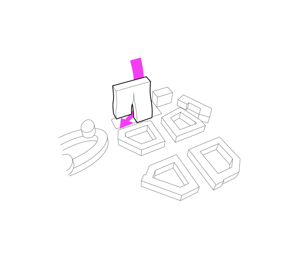 OPEN SLAB — To open the site to the adjacent subway, BIG twisted the slab open, leaving a slit for a bridge to pass through from station to street. The two halves were 800 m2 each, perfect for offices.