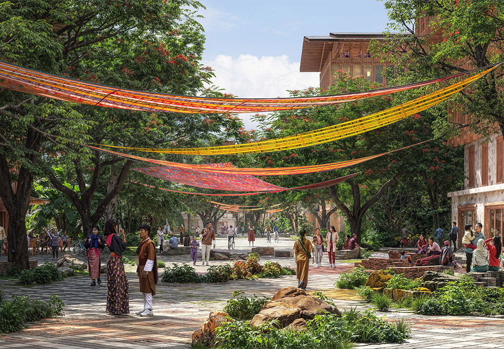 Located in the town of Gelephu in Southern Bhutan, the 2,500 km² masterplan titled ‘Gelephu Mindfulness City’ (GMC) by BIG, Arup, and Cistri is informed by Bhutanese culture, the principles of the GNH, and the country’s strong spiritual heritage. To guide the work over the next 100 years from design through construction and operation, the design team has developed a bespoke draft sustainability framework to help achieve Bhutan’s sustainability aspirations, provide resilient social and economic infrastructure, and opportunities to counter its current socioeconomic challenges whilst retaining the natural and cultural core principles that make the country so unique.