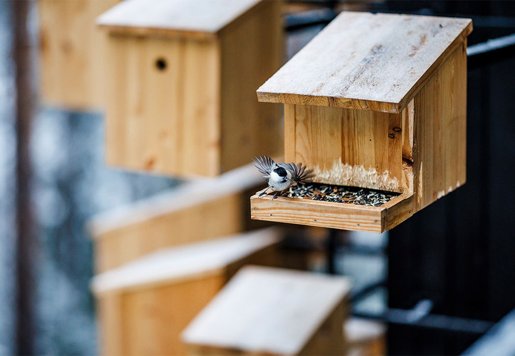 Designed in collaboration with Treehotel and Swedish ornithologist Ulf Öhman, the Biosphere cabin brings 350 birdhouses to the Harads village, with the mission to decrease the downward spiral of the bird and bat population in the region.